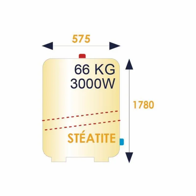 FAIS, Electric Vertical Wall-Mounted Water Heater 200 L, Steatite, Diameter 560 mm, Designed and Made to Be Installed in France [Energy Class C]