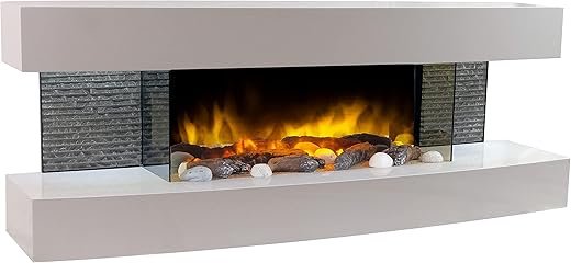 Chemin’Arte – Cheminée Électrique Murale Design Lounge 120 cm – Blanche – Conçue en France – Garantie 2 Ans