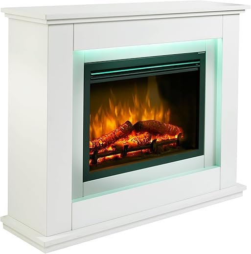 KAMINIO Cheminée Electrique Lea – Cheminée Électrique 3-en-1 avec Vue panoramique, Chauffage, Effet de Flamme, 12 Couleurs de Flammes, télécommande (50 Pouces)