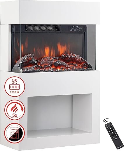 KAMINIO Cheminée Electrique Henri – Poêle Électrique avec Chauffage, Effet de Flamme 3D, Compartiment à Bois, télécommande (Blanc)