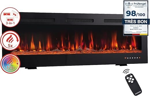 KAMINIO Cheminée Electrique Marlon – Cheminée Électrique 3-en-1 avec Chauffage, Effet de Flamme 3D, 12 Couleurs de Flammes, télécommande (60 Pouces)