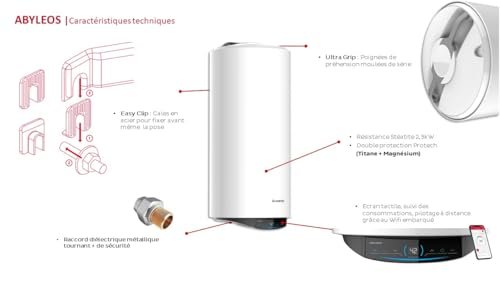Ariston ABYLEOS XPERT WIFI 200l – Steatite Connected Electric Water Heater – Vertical Wall Ø530mm – Energy Flexibility – Lifetime Replacement – NF Performance 3***