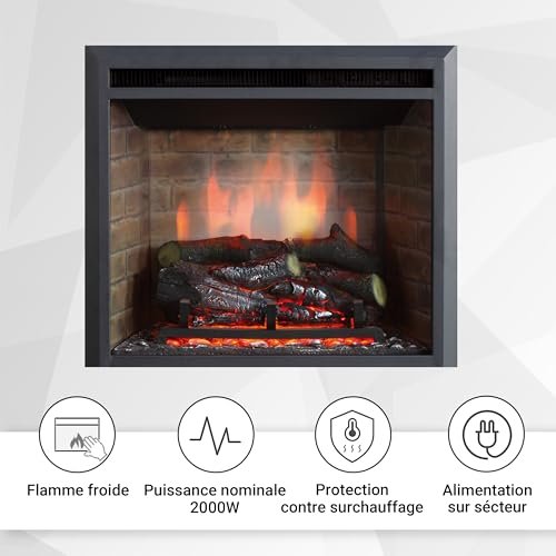 BALDERIA cheminée électrique Calida 23″ | Foyer électrique Mural avec Effet de Flammes 3D | Chauffage 2000W, éclairage LED | Cheminée encastrable avec télécommande, minuteur &…