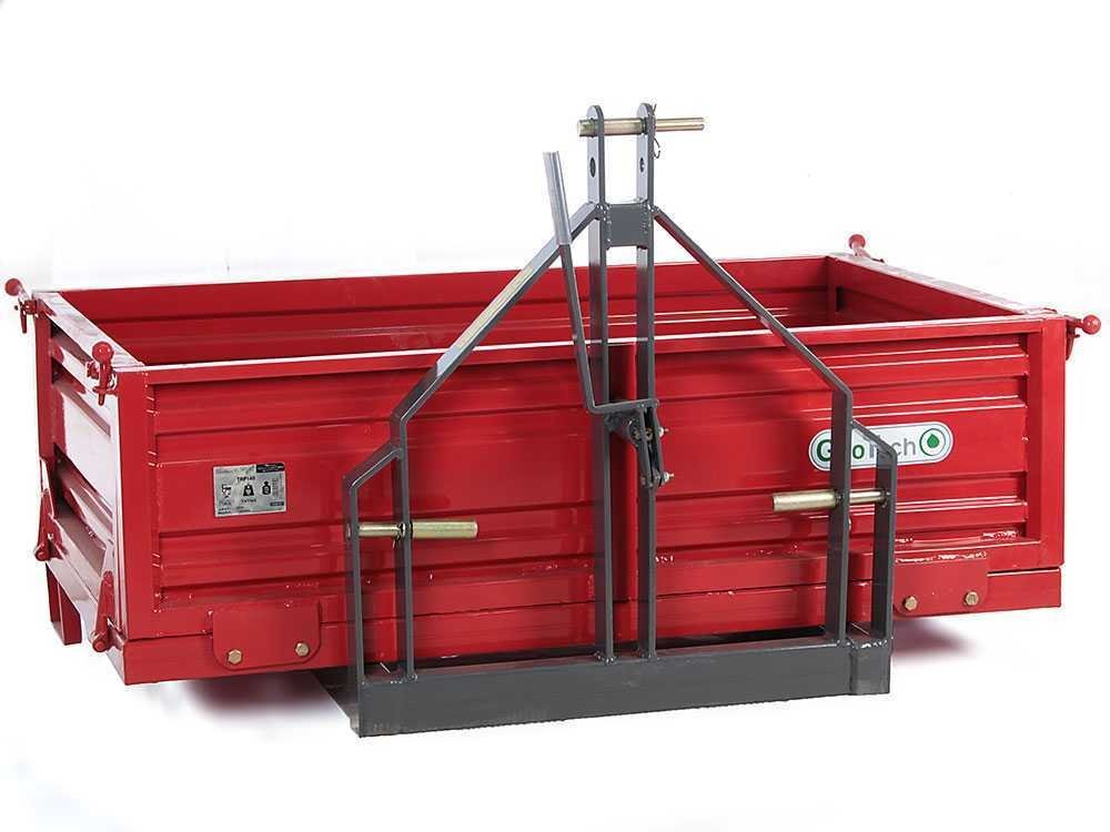 Benne 3 points pour tracteur GeoTech TRP 160 – Basculante – 3 ridelles ouvrables