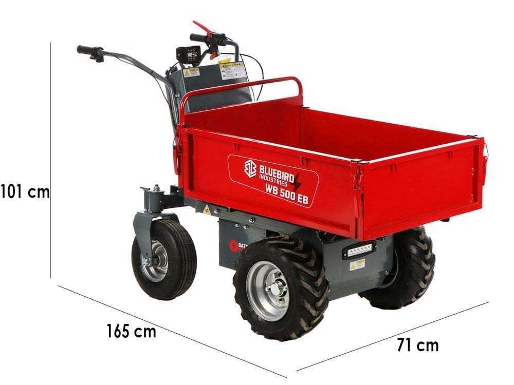 Brouette motorisée à batterie – Blue Bird WB 500EB – 48 V 32 Ah – Benne extensible