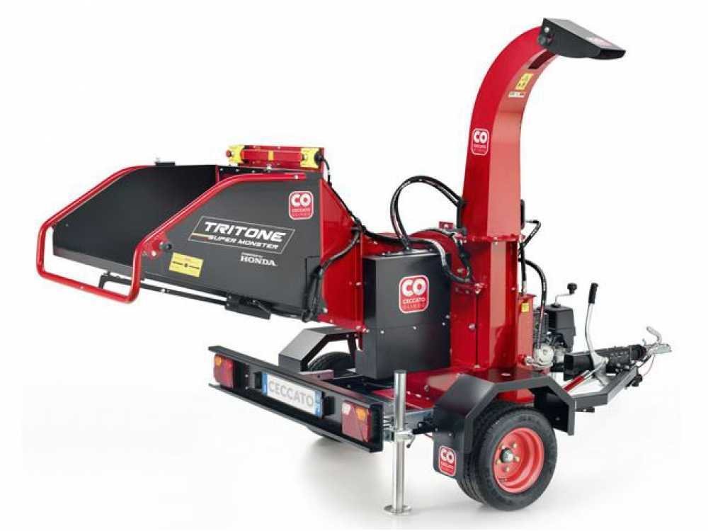 Le broyeur de végétaux doté de châssis sur roues de la Ceccato modèle Tritone Super Monster avec moteur HONDA GX690 est un broyeur de végétaux professionnel équipé de moteur thermique, adéquat pour l’émiettement de grosses quantités de déchets verts. Ce modèle, top de gamme, est muni d’un rouleau à entraînement automatique du feuillage, activé par une pompe oléodynamique, et de trémie de dimensions exceptionnelles qui permettent aux opérations de remplissage d’être très simples.