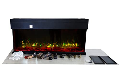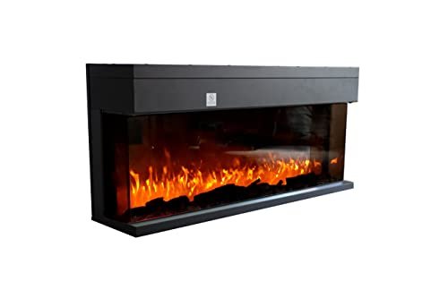 - CARACTÉRISTIQUES ET CONCEPTION ECONOMIE D’ENERGIE: D’une puissance de 10W à 2000W, cette cheminée en acier et verre trempé noir dispose d’une protection contre la surchauffe. Elle peut être encastrée ou fixée au mur et est livrée avec 7 buches décoratives de toutes tailles, des cristaux transparents et rouges. Ne consomme que 10W en mode flammes