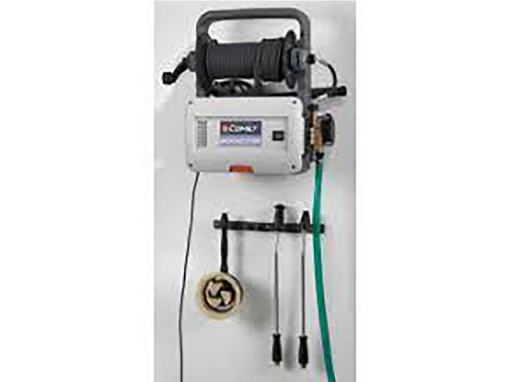 1) MURAL : en effet, le nettoyeur peut être monté en position fixe au mur et être utilisé facilement sans devoir le détacher grâce au grand enrouleur de type professionnel, et à la longueur du tuyau offert.