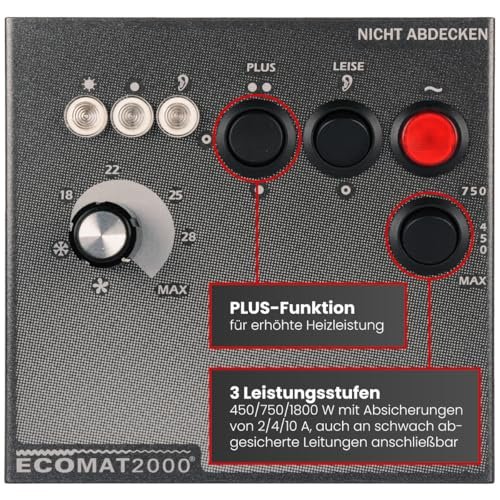 - Ventilateurs à roulements à billes pour une longue durée de vie. Ecomat 2000 Select : le chauffage haut de gamme . En outre, avec la fonction SILENCE, 3 niveaux de ventilation pour une chaleur rapide. Lampes de contrôle Thermostat électronique (température souhaitée réglable en continu)