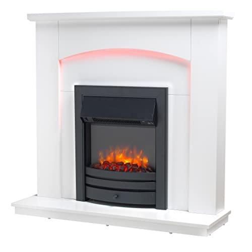Endeavour Fires New Cayton Electric 42″Fireplace Suite, fitted with Black Trim and Fret, 220/240Vac 1&2kW with 7 day Programmable Remote Control Heater in off white MDF Surround