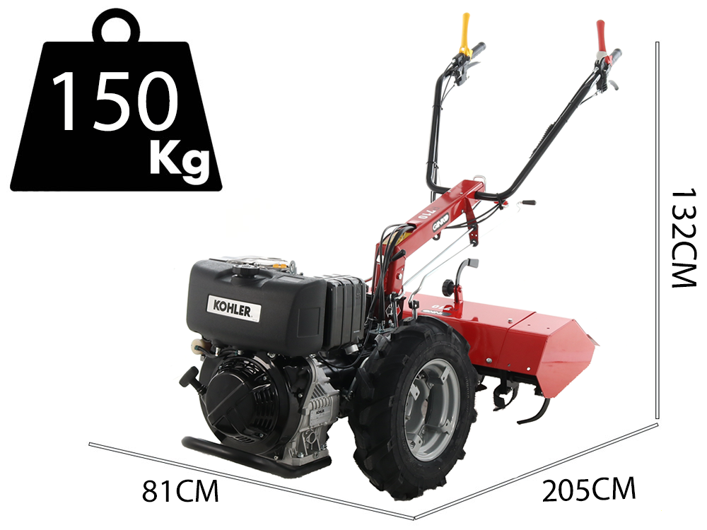 Motoculteur avec différentiel de qualité hautement professionnelle, avec moteur Kohler diesel (le meilleur diesel aujourd’hui sur le marché), SUPER PUISSANT et adapté également aux travaux intensifs dans des lieux incommodes et avec présence de pentes.