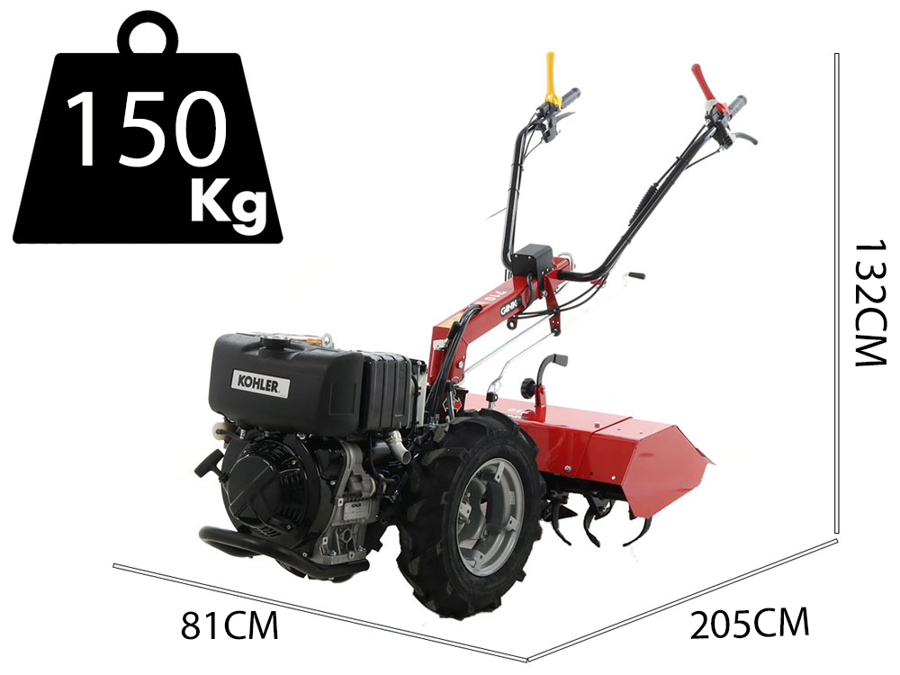 Motoculteur hautement professionnel avec moteur Motore Kohler KD15-440 de 441cc doté de démarrage électrique, adapté au travail même intensif sur terrains difficiles et avec pentes.
