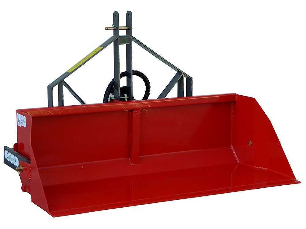 Ce godet agricole arrière pour tracteur GeoTech est doté de basculement hydraulique.