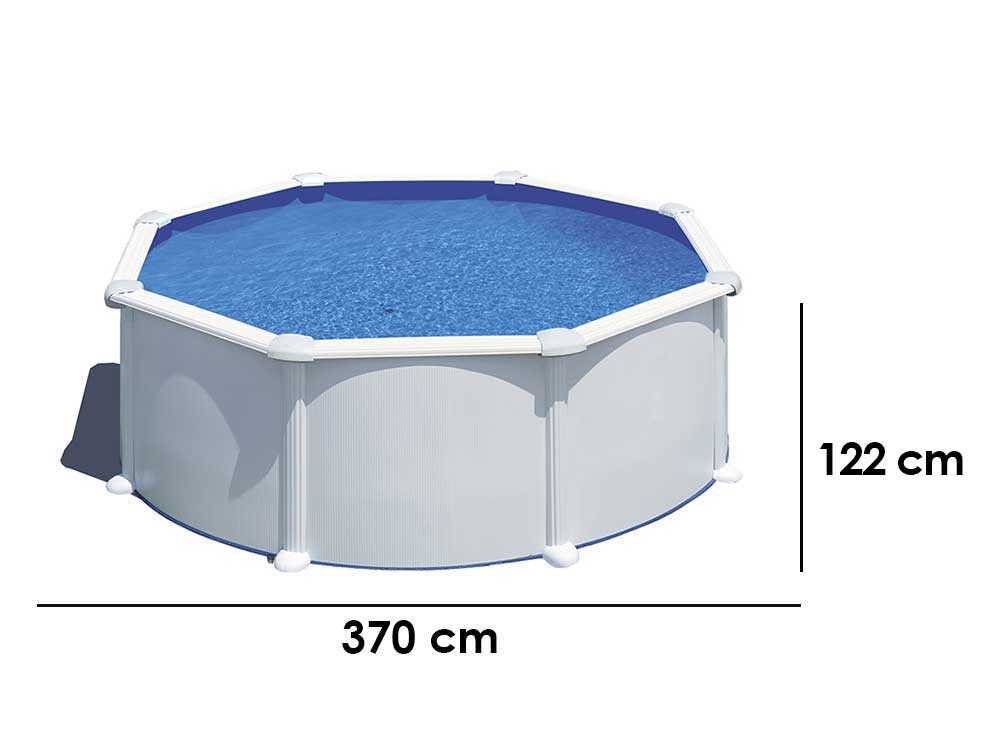Avec un diamètre intérieur de 350 cm et une hauteur de 120 cm, la piscine offre suffisamment d’espace pour profiter de moments de loisirs et de fraîcheur pendant les mois les plus chauds. L’encombrement total est de 370 cm de diamètre et 120 cm de hauteur, assurant une structure solide et stable, adaptée à résister aux intempéries dans le temps.