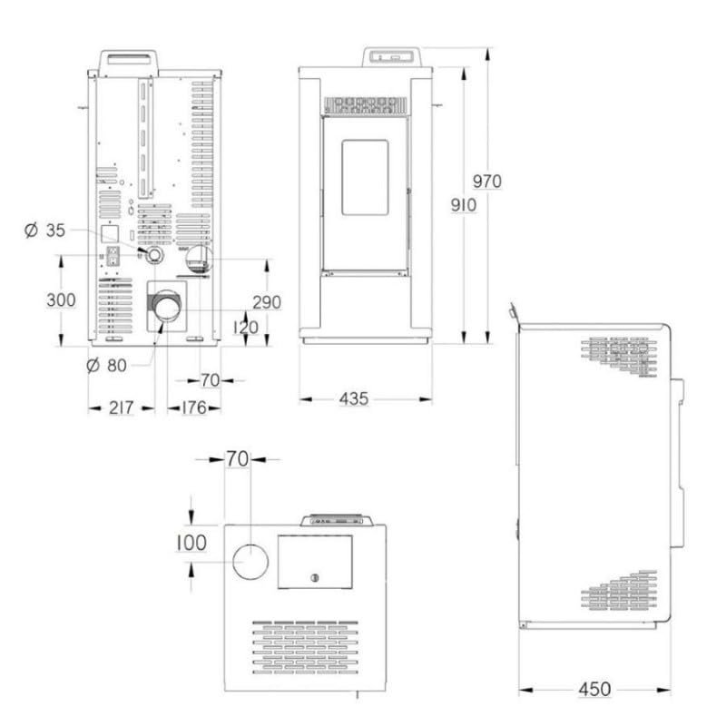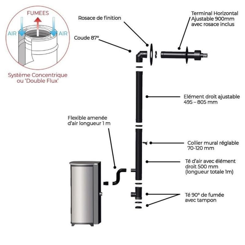 - Poêle étanche : Installation possible en sortie façade, sortie toiture et au-dessus du faîtage. Conduit Ventouse inclus dans cette offre.