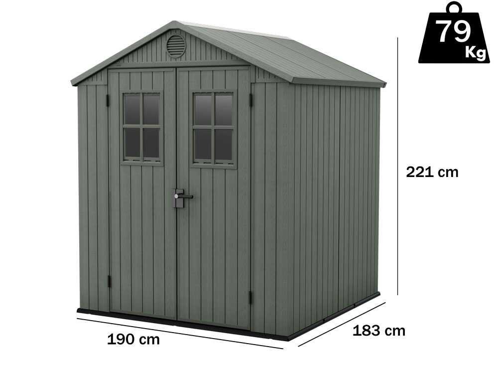 Keter Darwin vert – Abri de jardin – Avec fenêtres frontales – 190x183x221 cm
