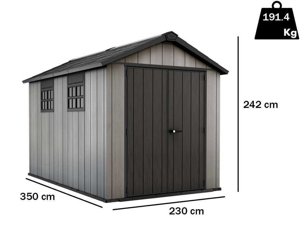 Keter Oakland 7511 – Abri de jardin – Avec porte à double battant et fenêtres – 230x350x242 cm