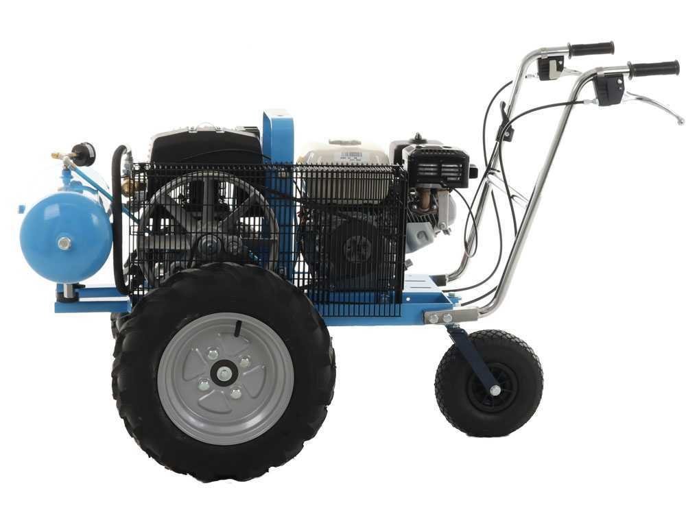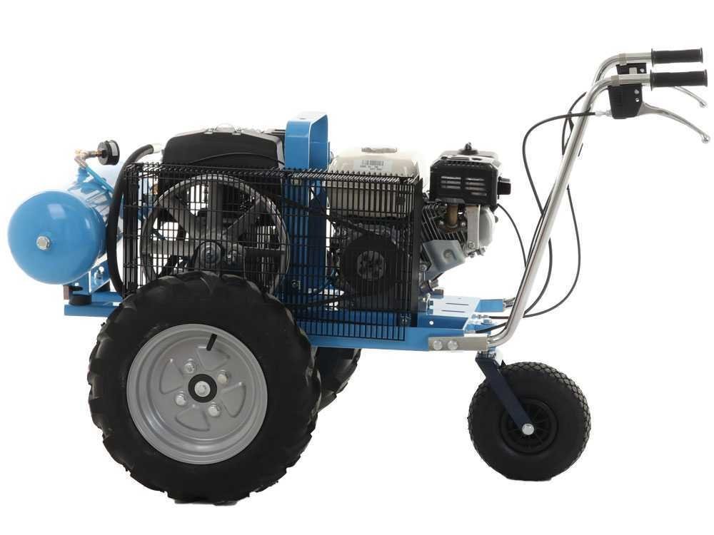 Ce moto-compresseur vous permet d’utiliser vos outils pneumatiques éloignés des sources d’alimentation par exemple dans les champs et de la déplacer avec facilité grâce à sa traction.