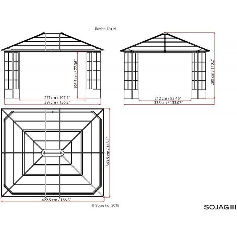 • Dimensions hors-tout : 423x363x280cm