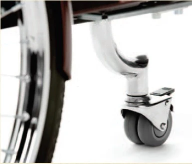Vitrine sur roues avec un socle roue pivotante équipée d’un frein pour une mobilité aisée.